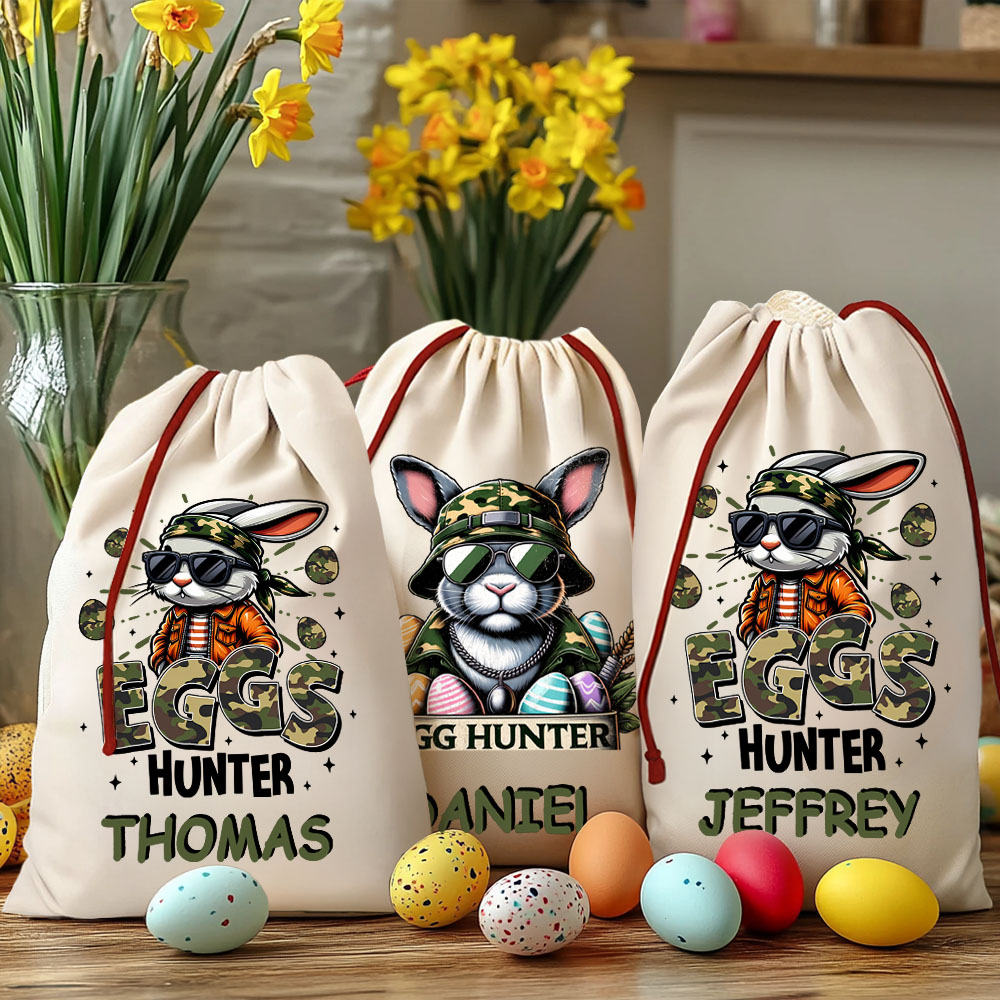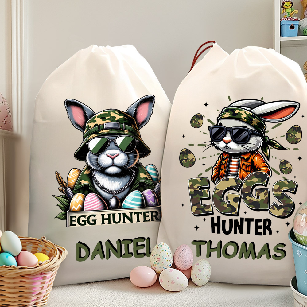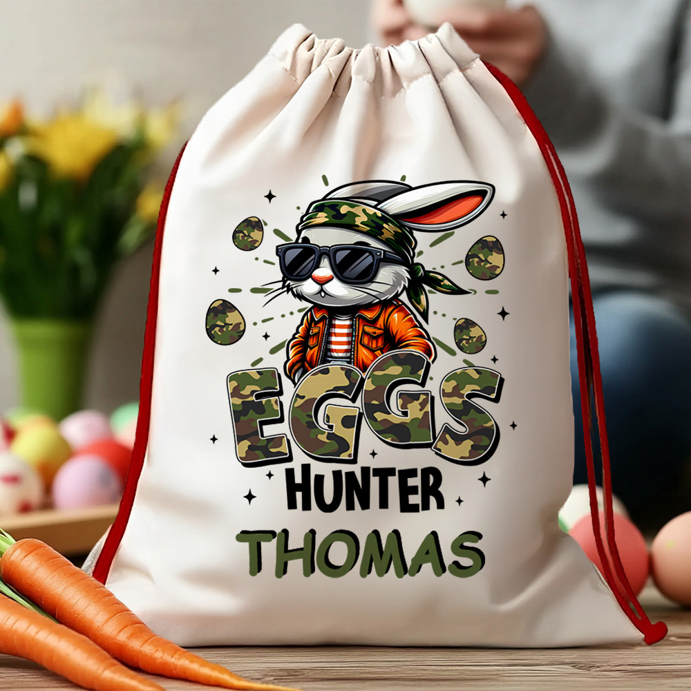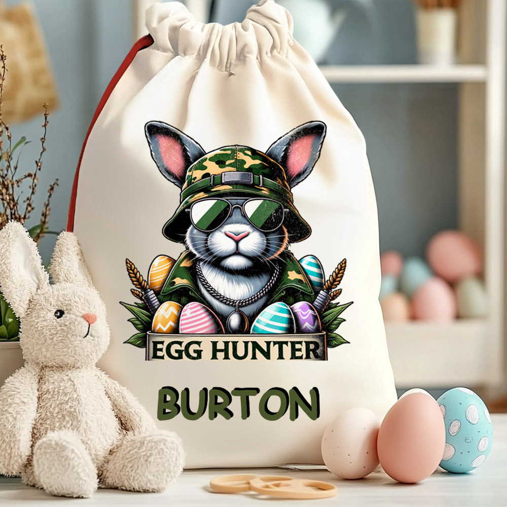 This cool bunny Easter bag with customizable name features a stylish and playful bunny image, full of personality and fun, making your Easter celebration more unique!