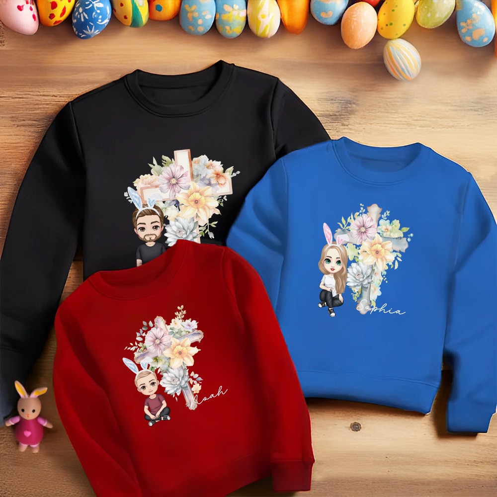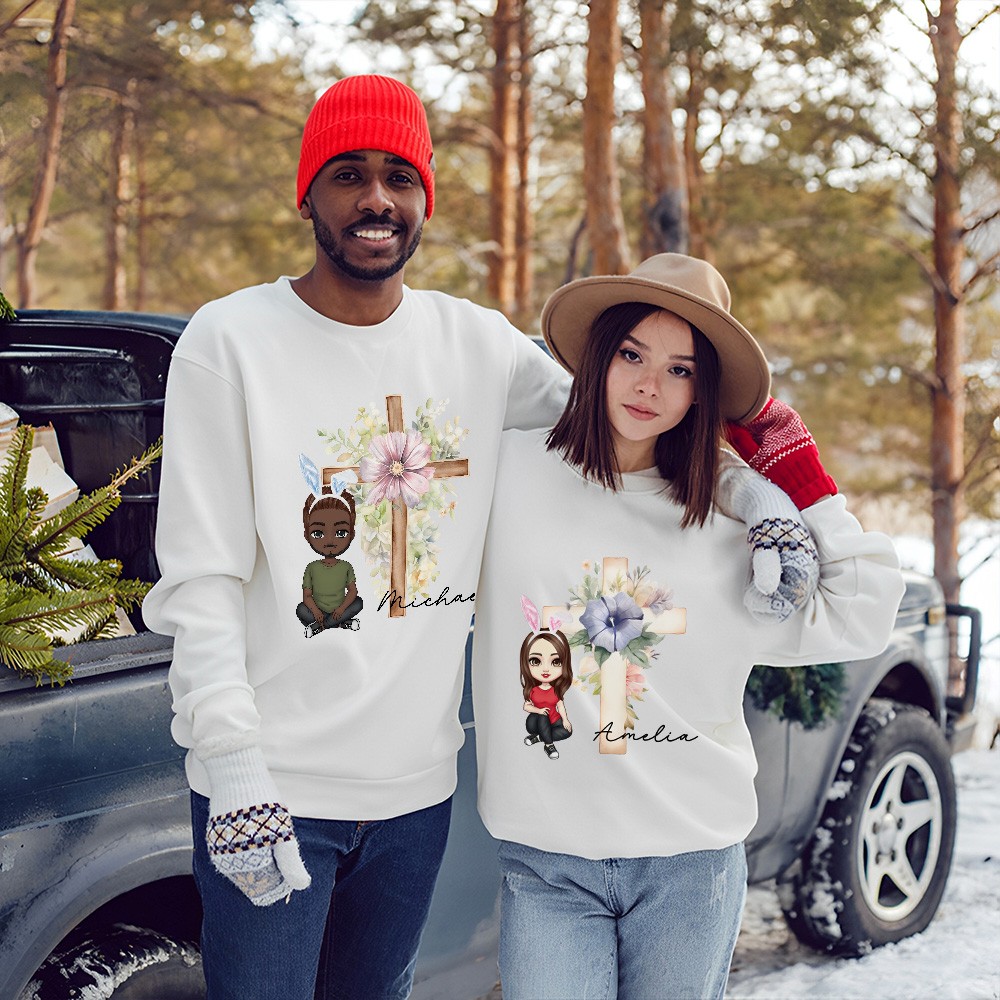 Perfect Gift - This personalized T-shirt or sweatshirt is an excellent Easter gift for kids, boys, girls, or the entire family. Combining the cross, birth flowers, and customized elements makes a meaningful tribute to your loved ones and shared beliefs.